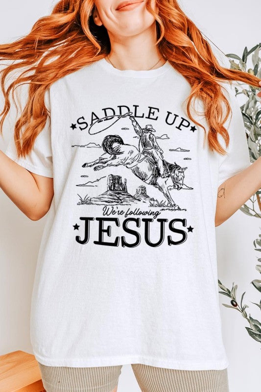 saddle up jesus shirt, christian western tee, cowboy faith graphic, rodeo christian shirt, western boutique tee, faith country apparel, religious cowboy shirt, inspirational western top