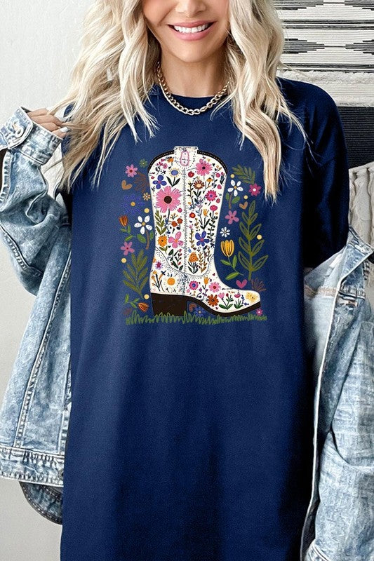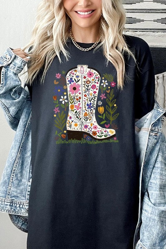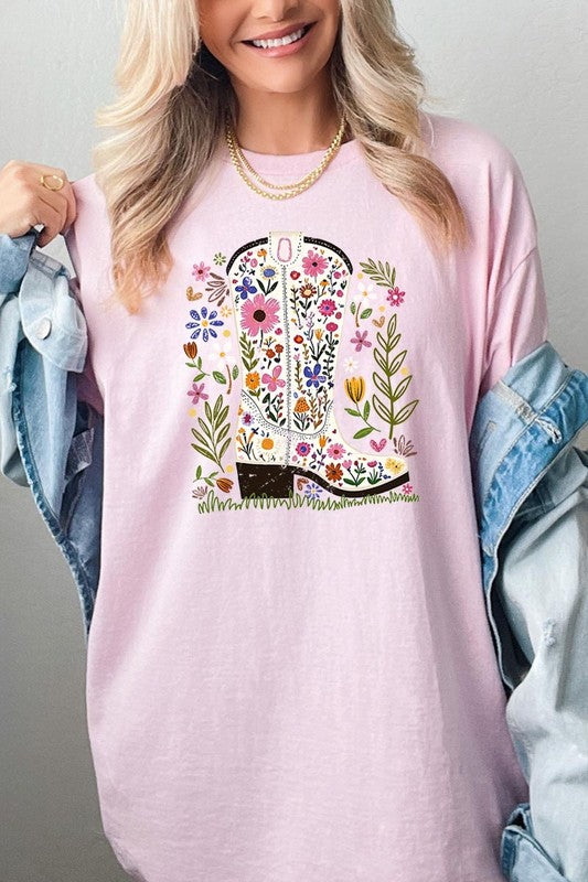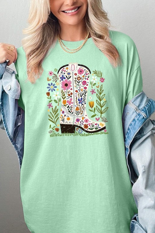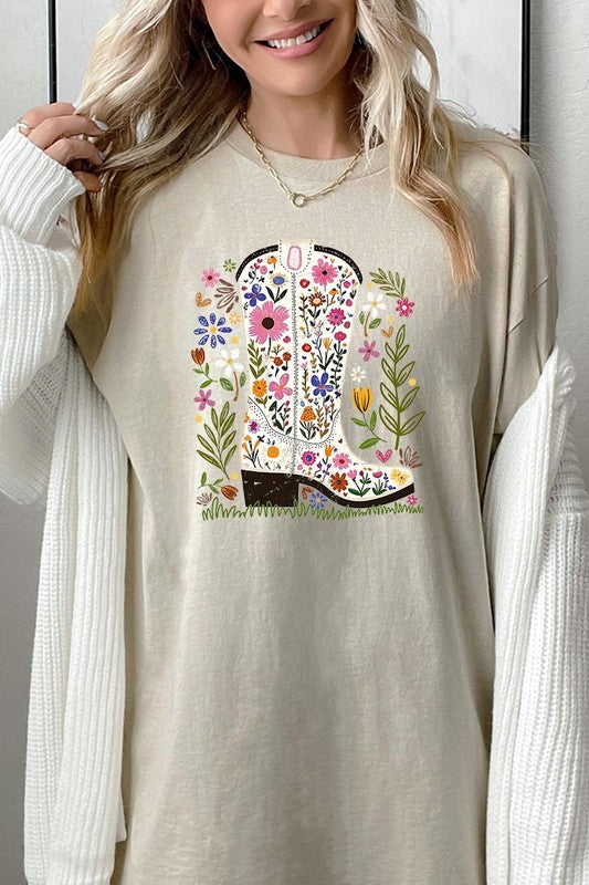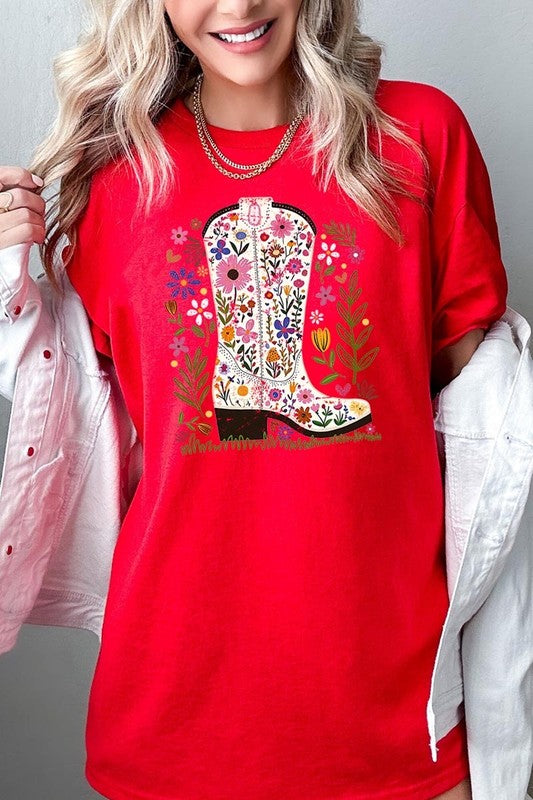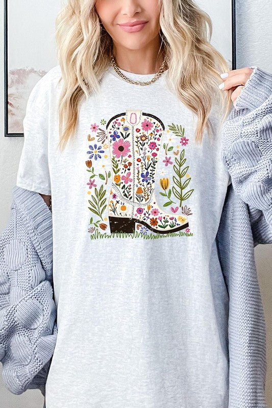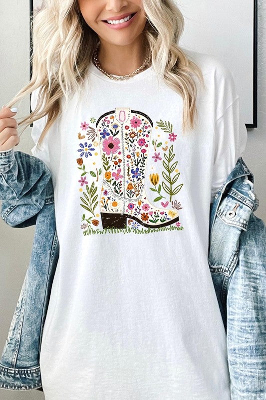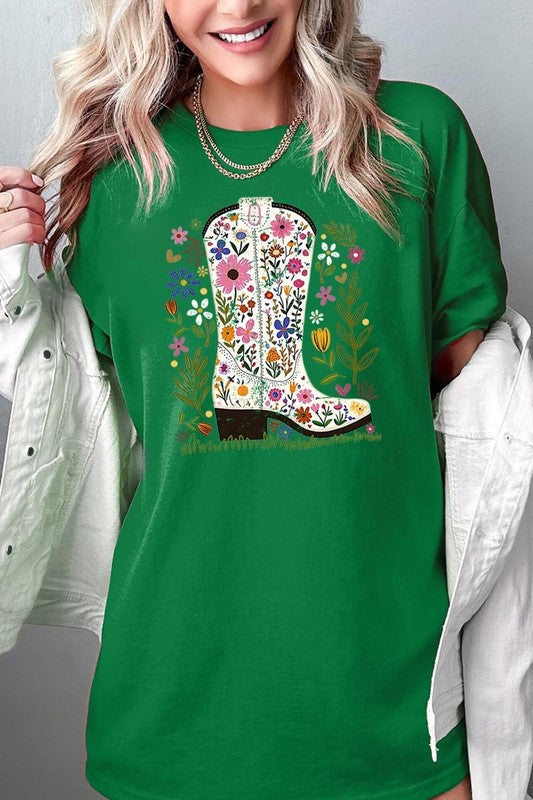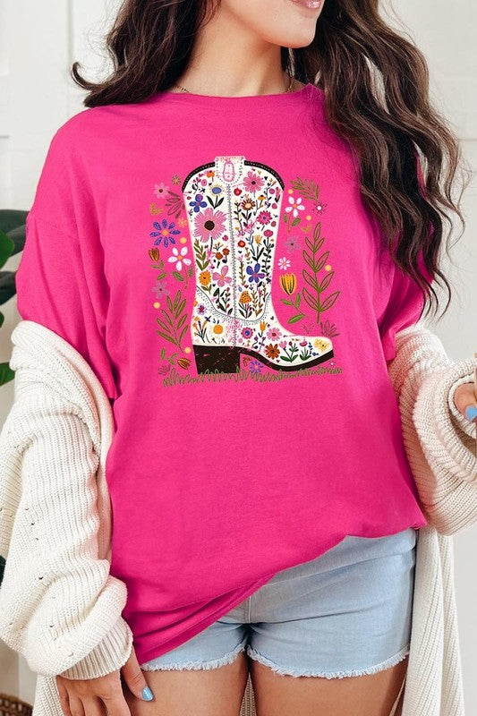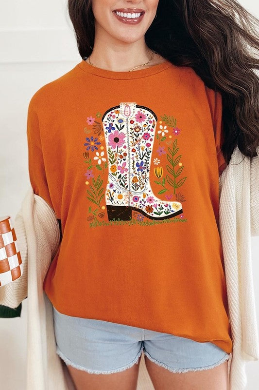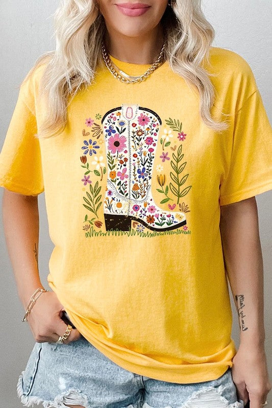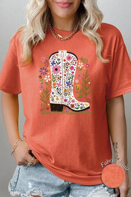 Western Floral Cowboy Boot Graphic Heavy Cotton T