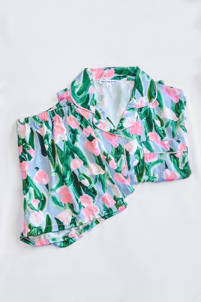 Fluid Tulips Satin Pajamas